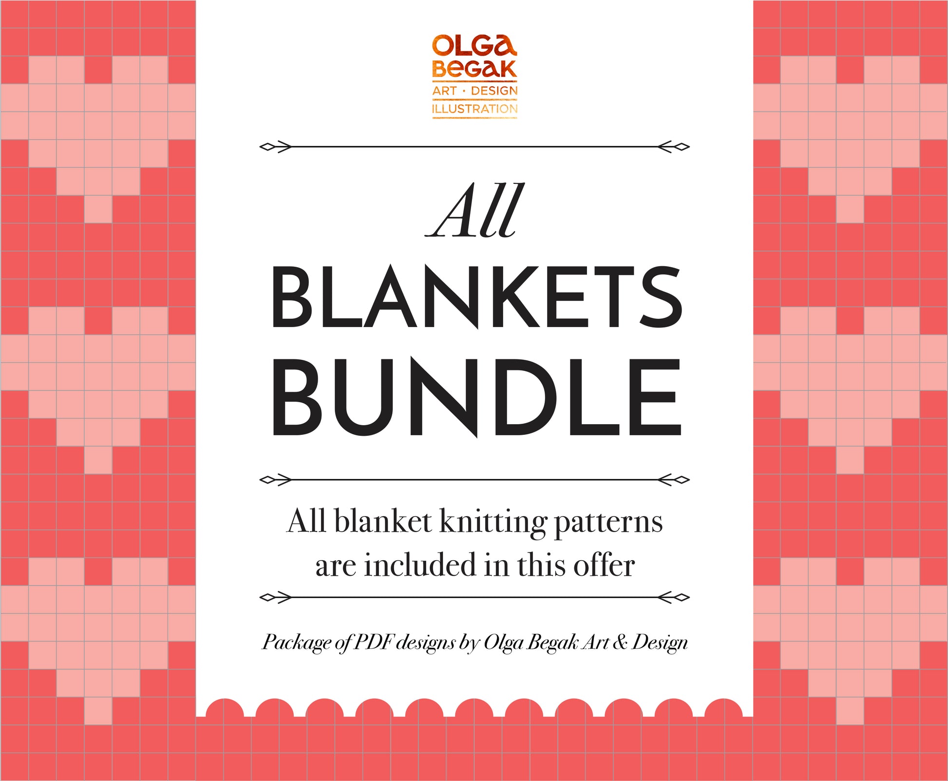 Discount package of all throw blankets knitting patterns. The bundle will be updated with new blanket designs or sizes — now I offer 7 designs in different sizes from 12”×12” to 48”×65” — so please stay tuned!
