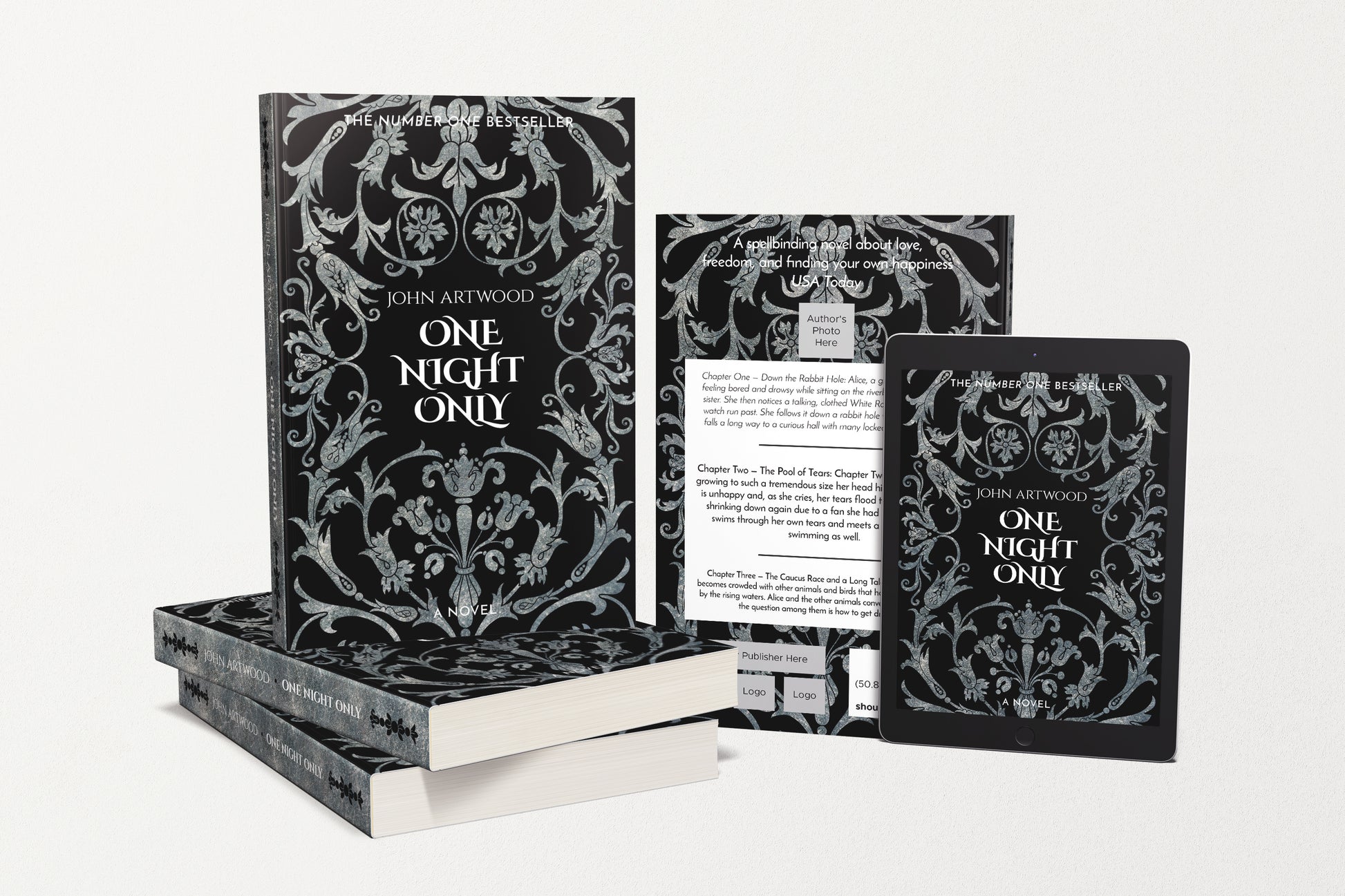 Customizable Book Cover Design Template #04 «One Night Only» pack includes paperback cover templates for most common US and UK formats.