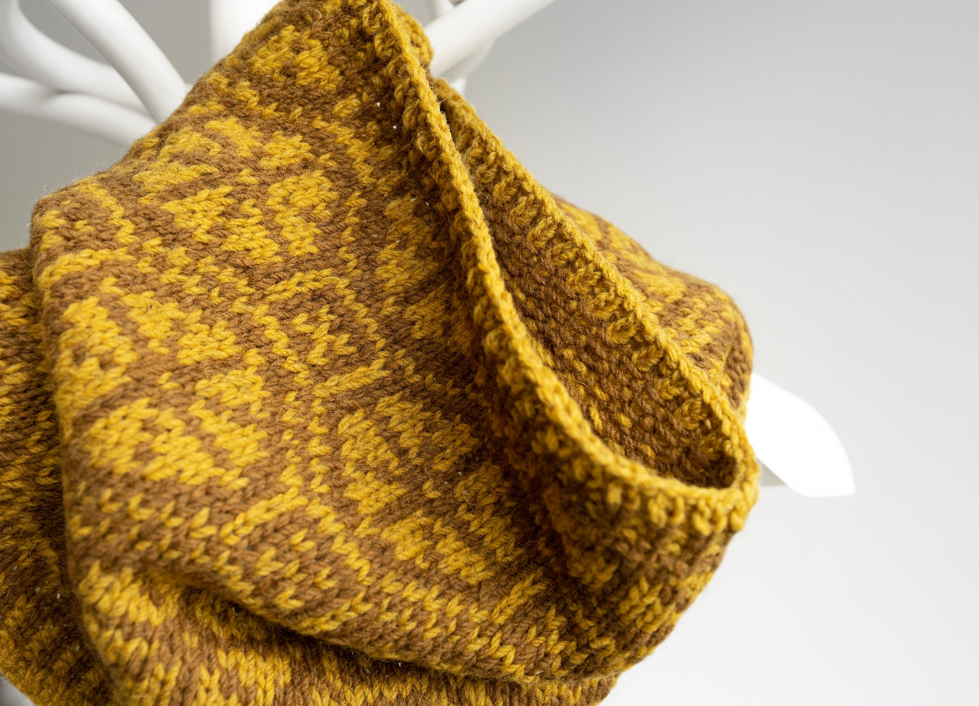RATAS Fair Isle Cowl is inspired by a traditional knitting motif from Hiiumaa, Estonia — the «tõllarattakiri», or carriage wheel pattern. «Ratas» means «wheel» in Estonian — a symbol of life’s rhythm, movement and continuity.