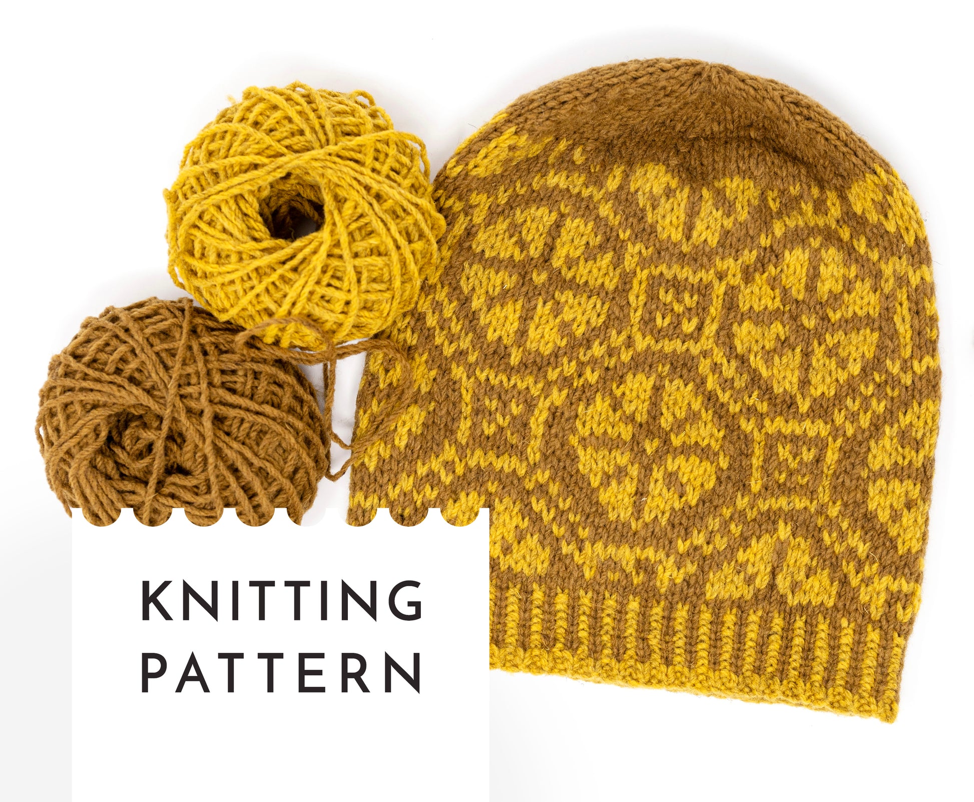 This is easy level knitting pattern; the following skills are required: Cast on, Knit, Purl, Circular Knitting, Color Knitting, Bind-Off. All measurements are given in US and metric. Hat is knitted in one piece. Furthermore full pattern support is available by message or email.
