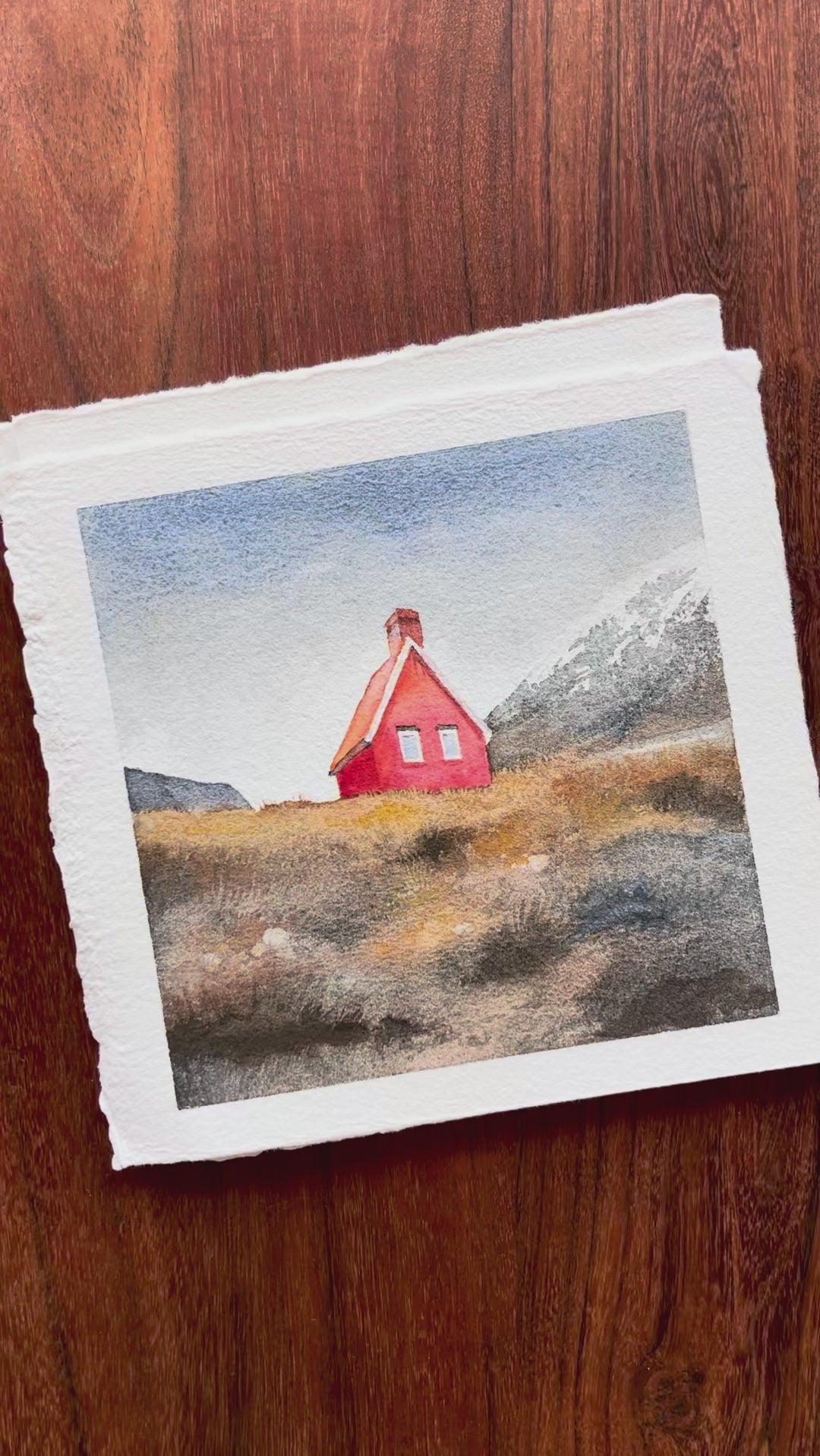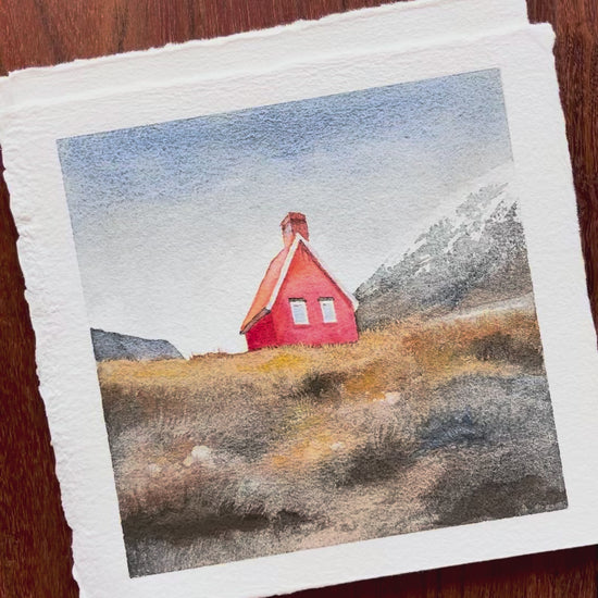 House Beneath the Mountain • Nordic Landscape Watercolor Giclée Art Prints (QP10)