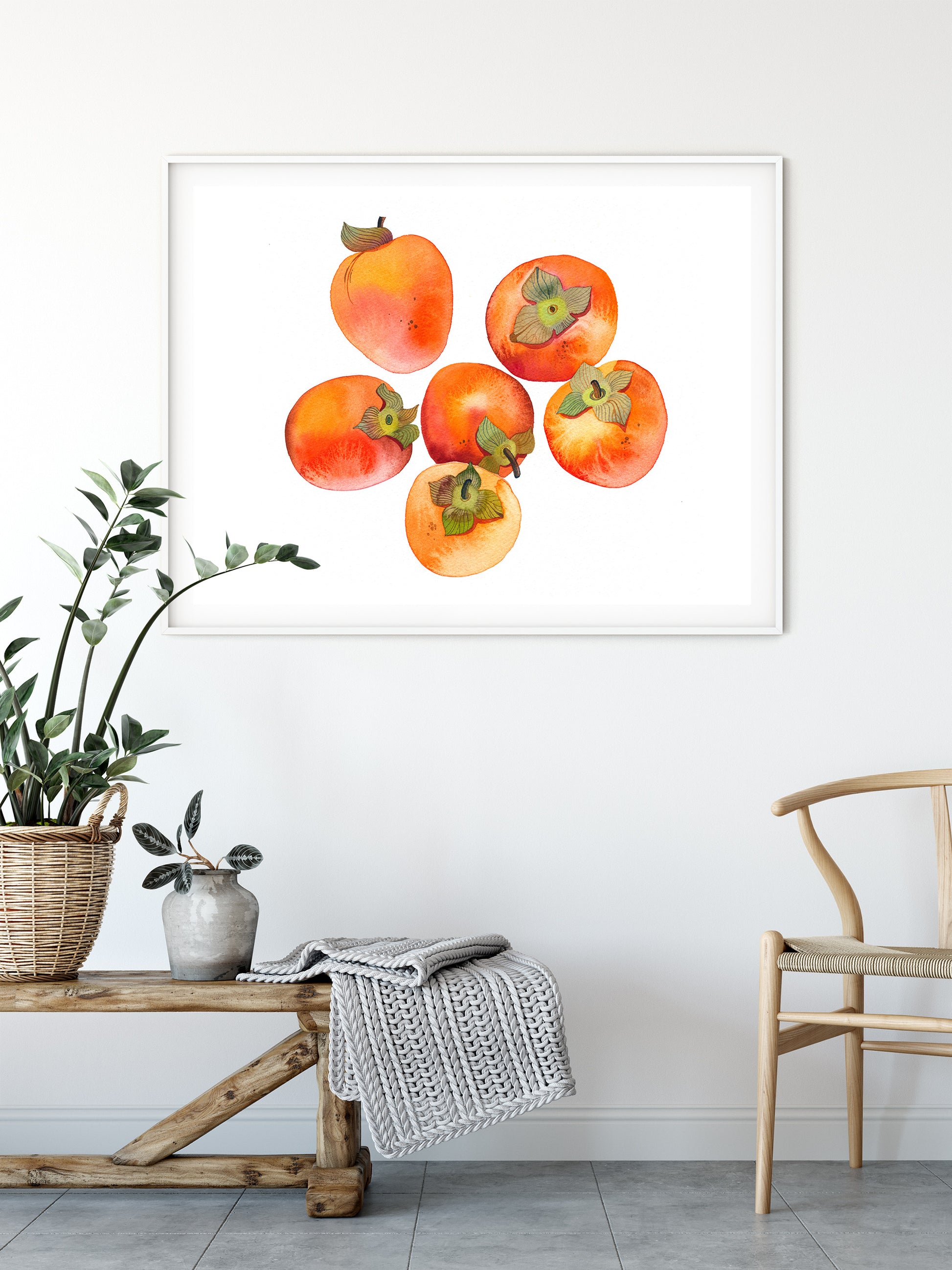 PERSIMMON FRUITS Watercolor Painting Giclée Print #W10