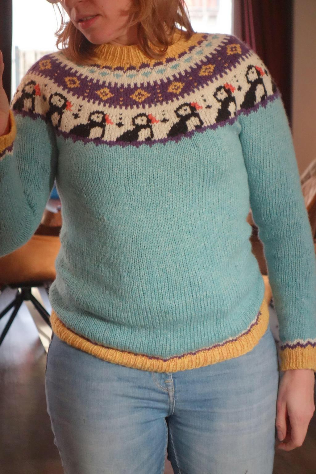 The Puffin Lopapeysa knitting pattern comes as a PDF with written instructions in English and German, charts and photos which you can download immediately after the payment. It prints onto A4 or US Letter paper. You may need a software such as Adobe Reader to access it.
