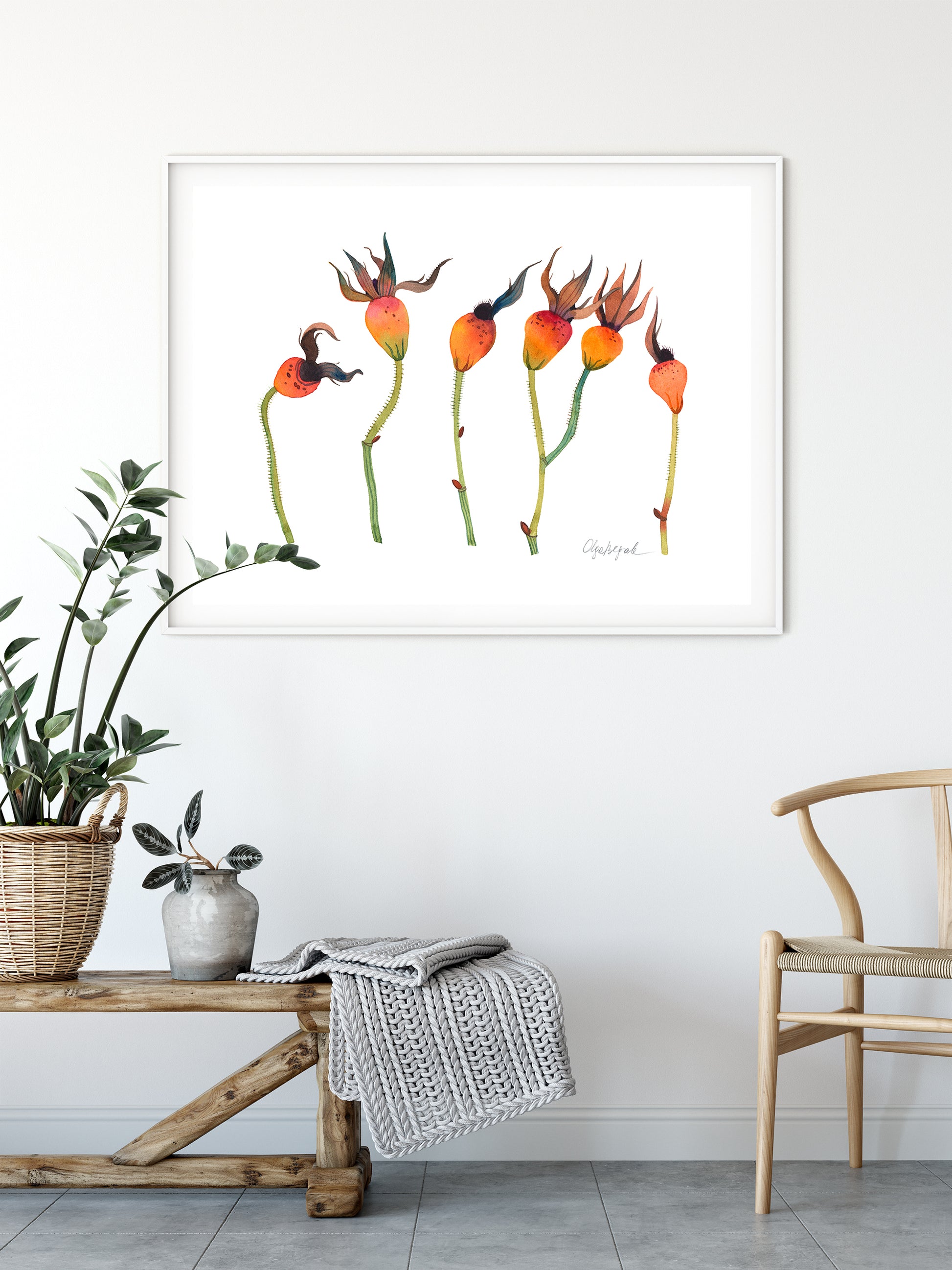 Fine art print ROSE HIPS. Originally made from life in watercolor technique and later turned into giclée—fine art prints of museum quality.