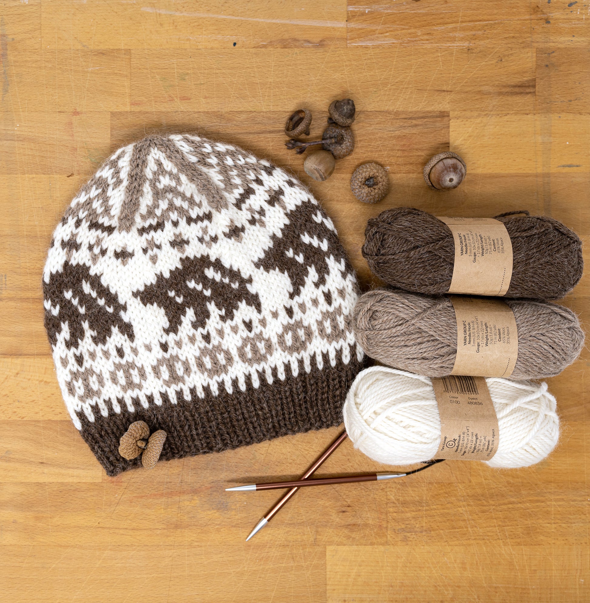 SELBU BEAR hand-knitted soft and warm hat features one of the most iconic and revered animals in world folklore — the bear. It is part of my Selbu Collection, which includes hand-knitted hats and bags.