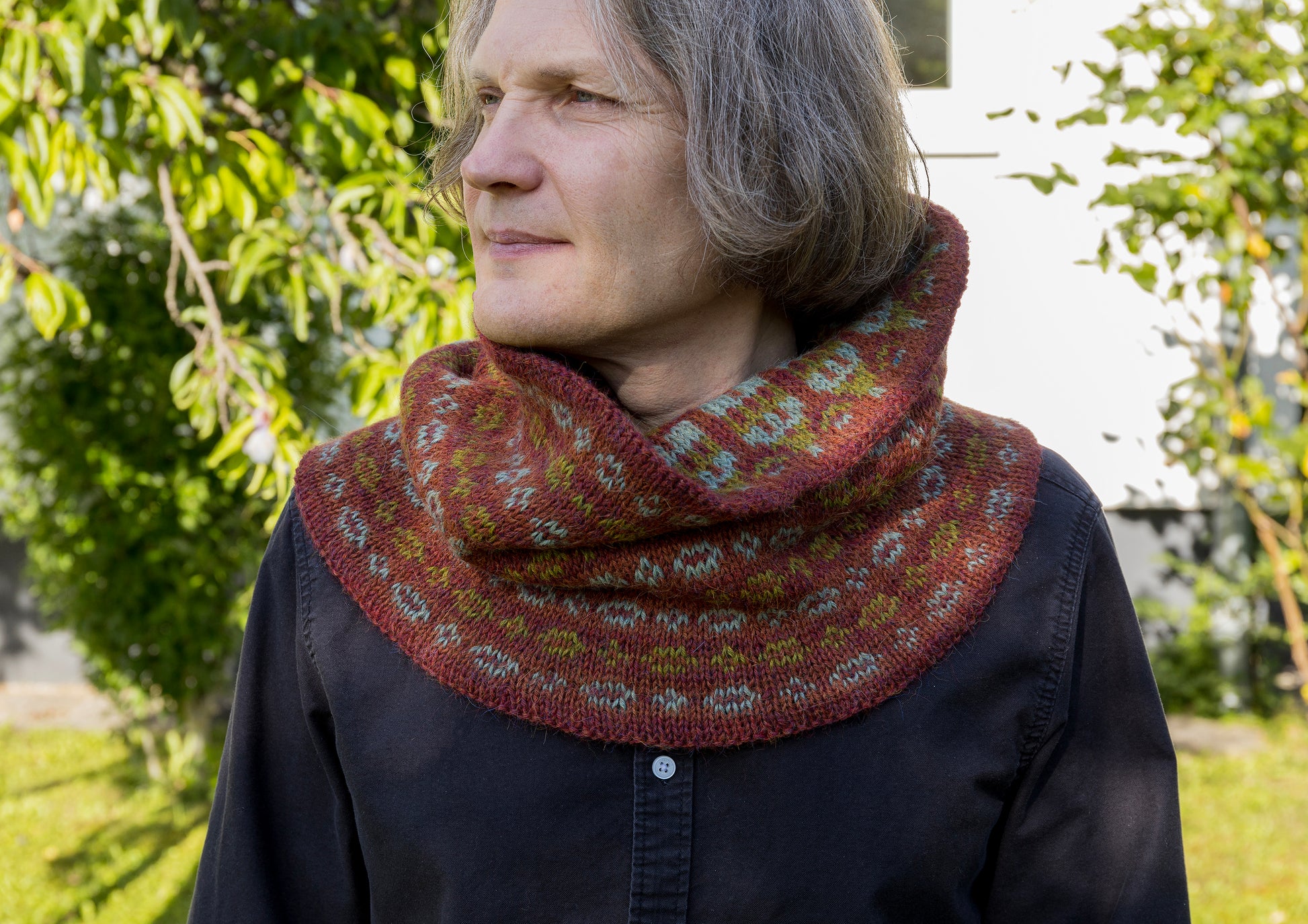 STORTORGET Hand-Knitted Alpaca Fair Isle Cowl is design by Olga Begak. The cowl is named after the main square in Gamla Stan (the Old Town) of Stockholm, known for its charming medieval houses. The cowl is double-sided, featuring two different patterns — houses and chains. It is hand-knitted from high-quality Peruvian alpaca wool by DROPS Design. DROPS Alpaca is a beautiful yarn spun from 100% superfine alpaca. The alpaca fiber is untreated, which means that it is only washed and not exposed to any chemical treatment prior to the dyeing. This highlights the fiber’s natural properties, while it also provides a better shape and texture quality. Garments made in this yarn are lightweight and comfortable, super soft directly on the skin, and have a nice characteristic sheen.