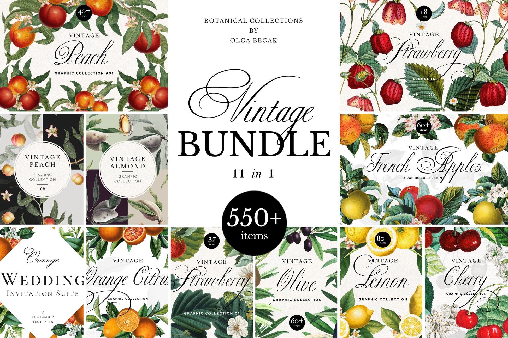 VINTAGE BOTANICAL Graphics Bundle contains 11 vintage graphic collections — 550+ items all together!