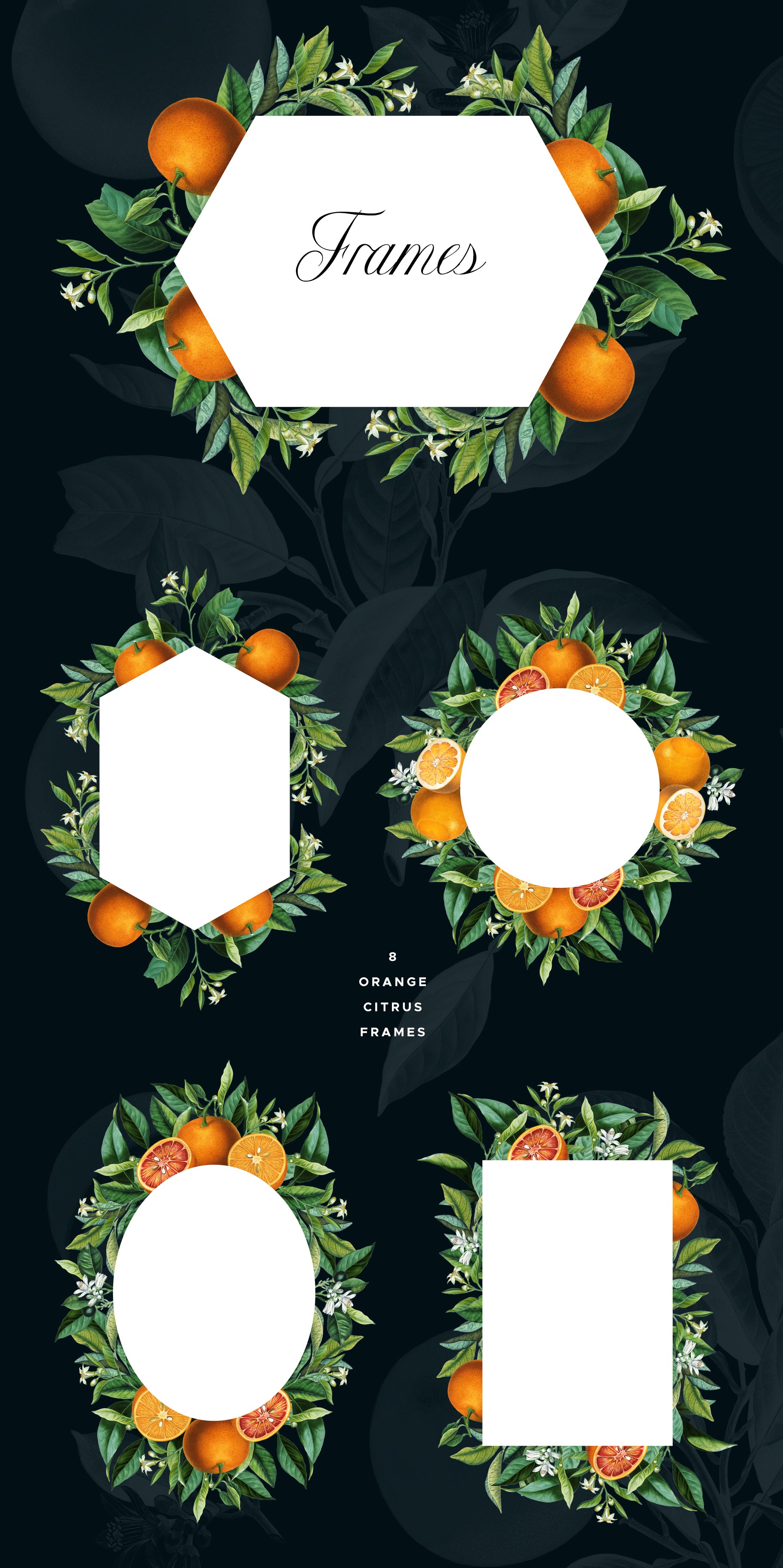 - 9 citrus arrangements (including up and down) | from 3100 × 2600 px to 7000 × 2900 px | PNG;