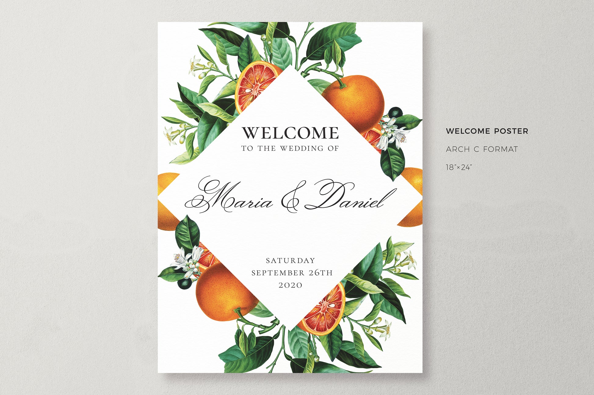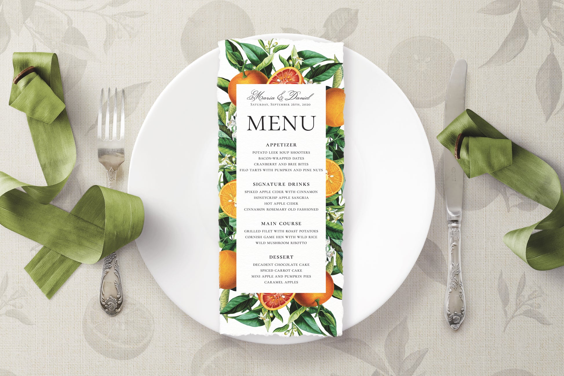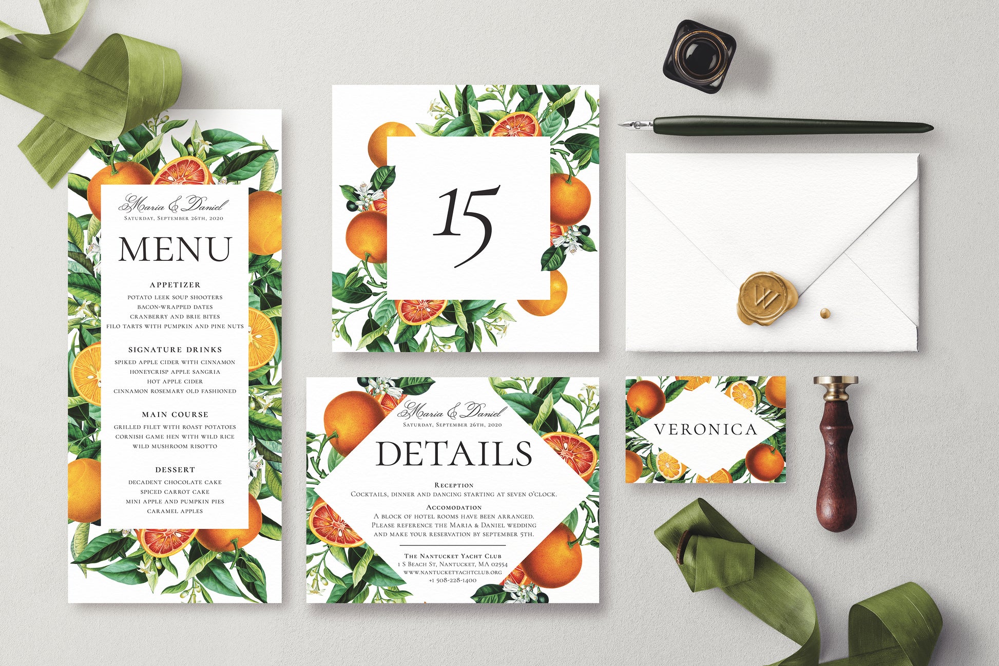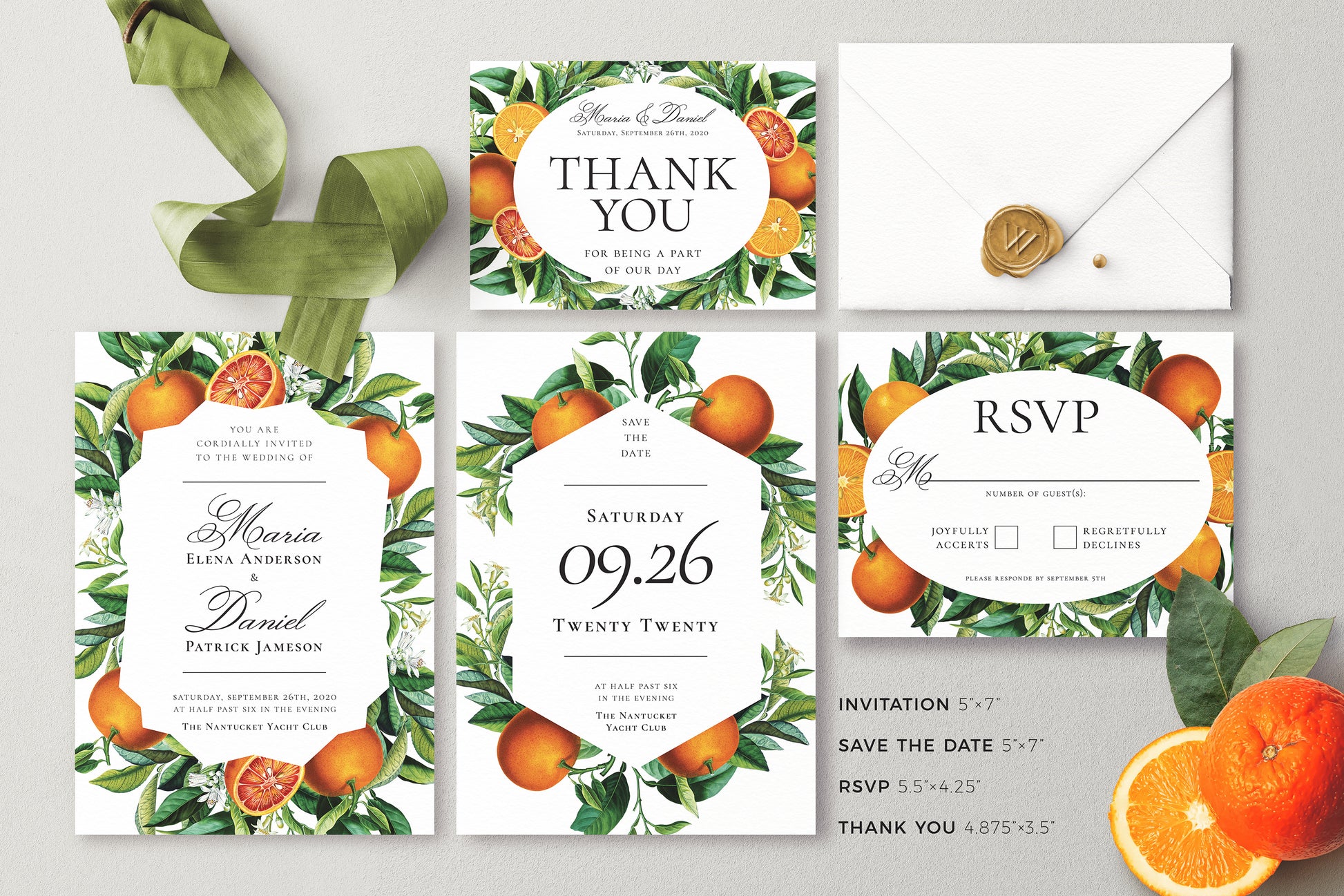 VINTAGE ORANGE CITRUS Wedding Invitation Suite contains 9 Photoshop templates:
