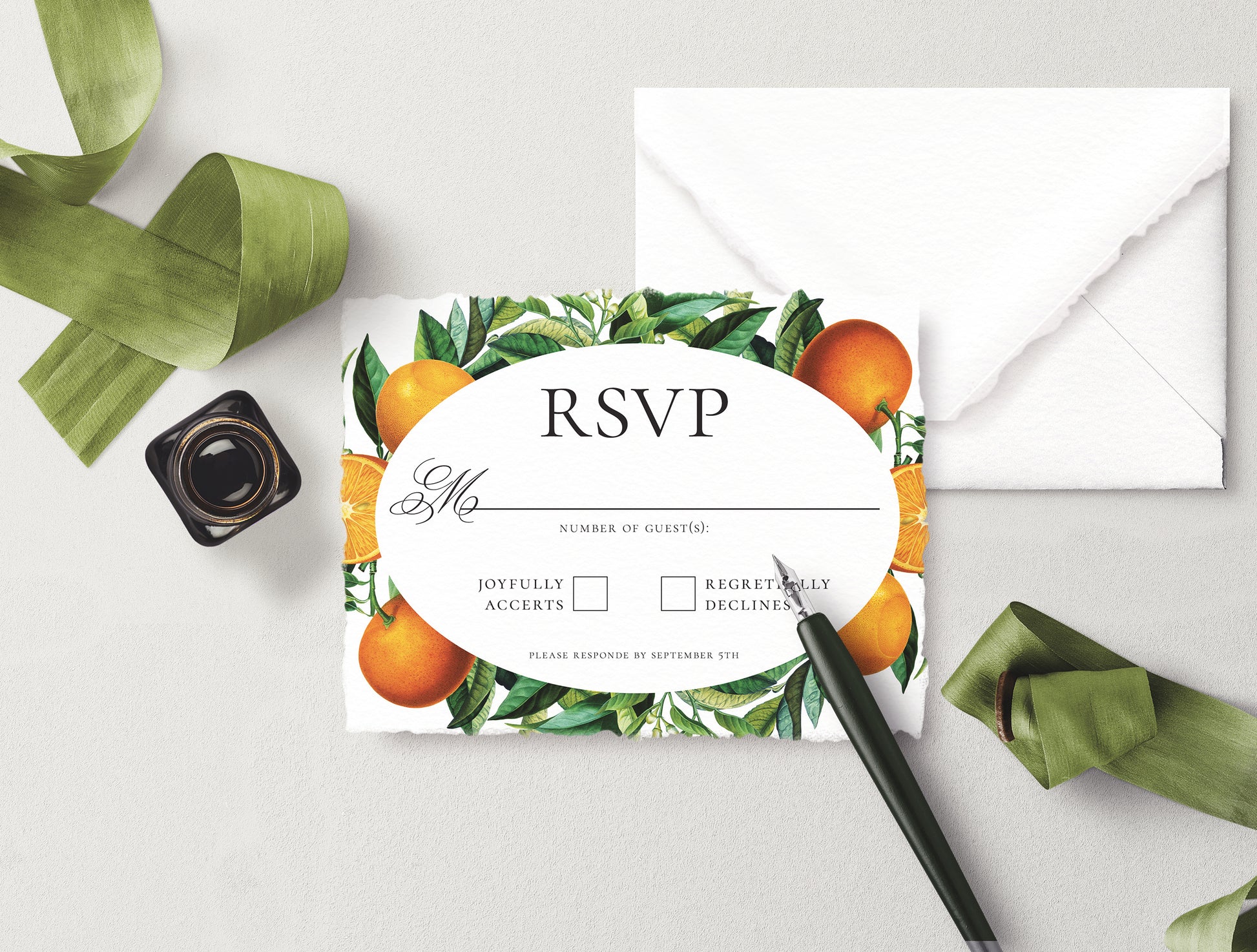 VINTAGE ORANGE CITRUS Wedding Invitation Suite